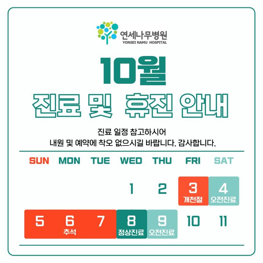 10월 3일 (금) 개천절 휴진,