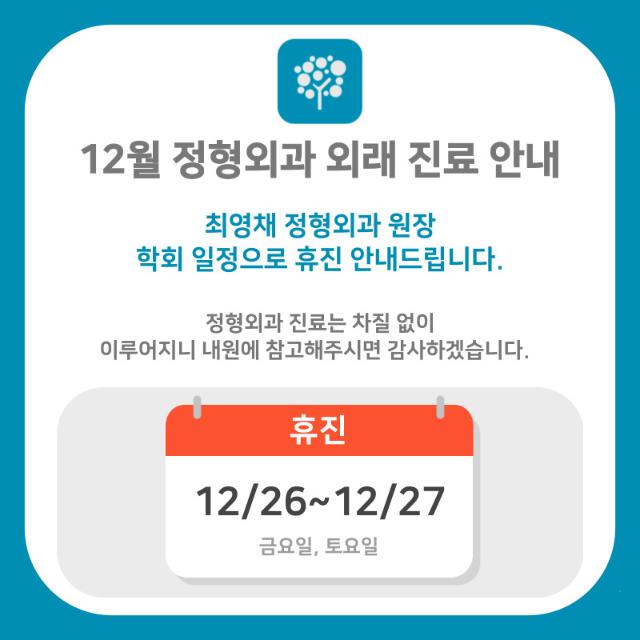 정형외과 최영채 원장님의 학회 일정으로 휴진 안내드립니다.